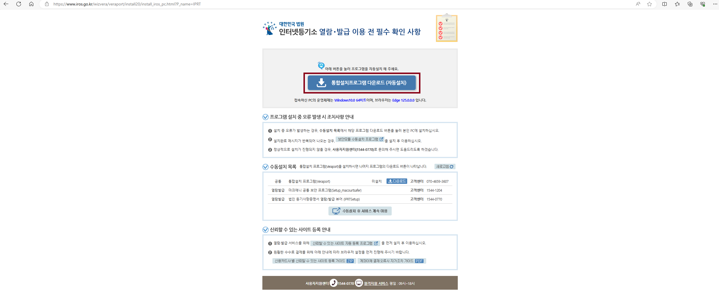 [통합설치프로그램 다운로드(자동설치)] 메뉴를 눌러서 프로그램 다운로드 받고서 설치까지 완료해주시면 됩니다!