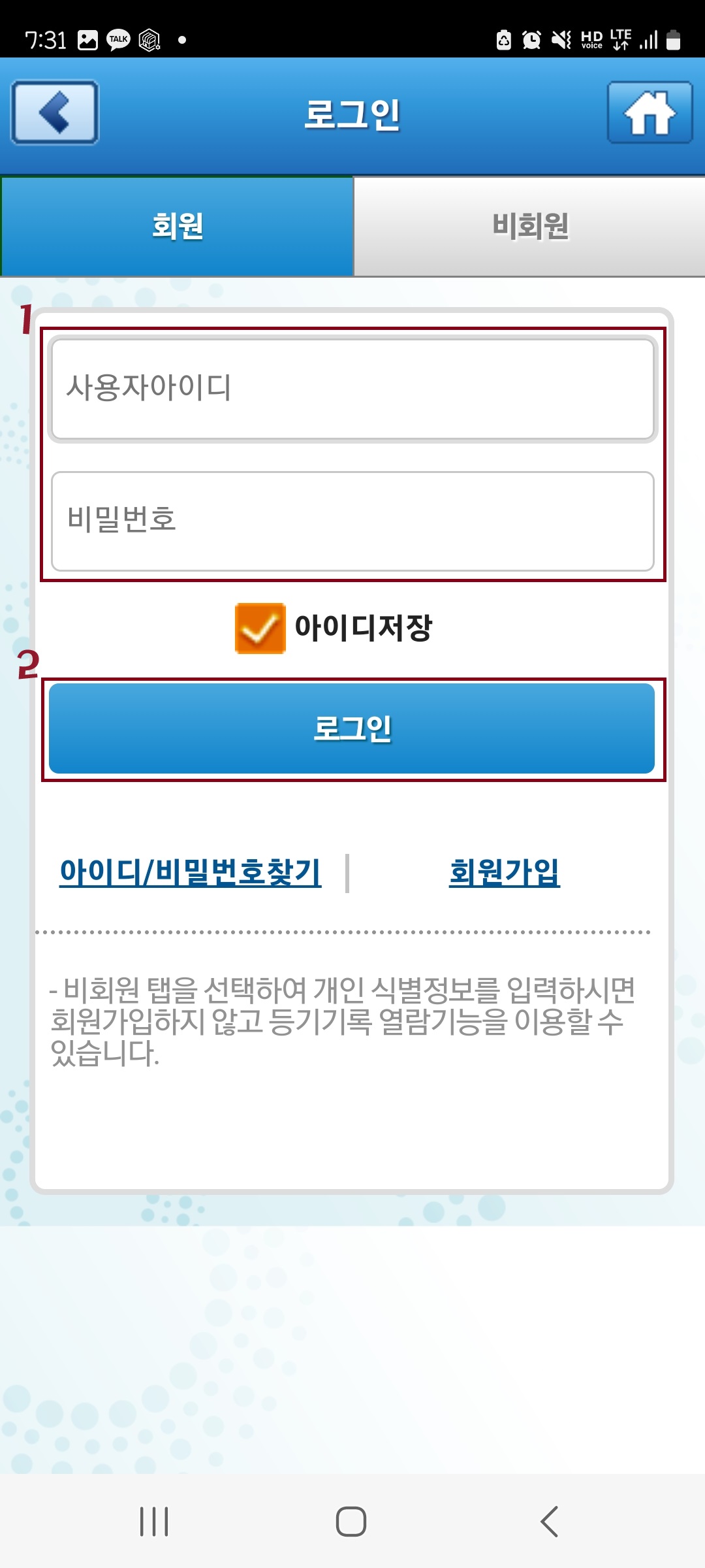 만약 아이디가 없거나 로그인하기 귀찮고 비밀번호도 까먹었다 하는 분들은 "비회원 로그인"도 가능해요!!
