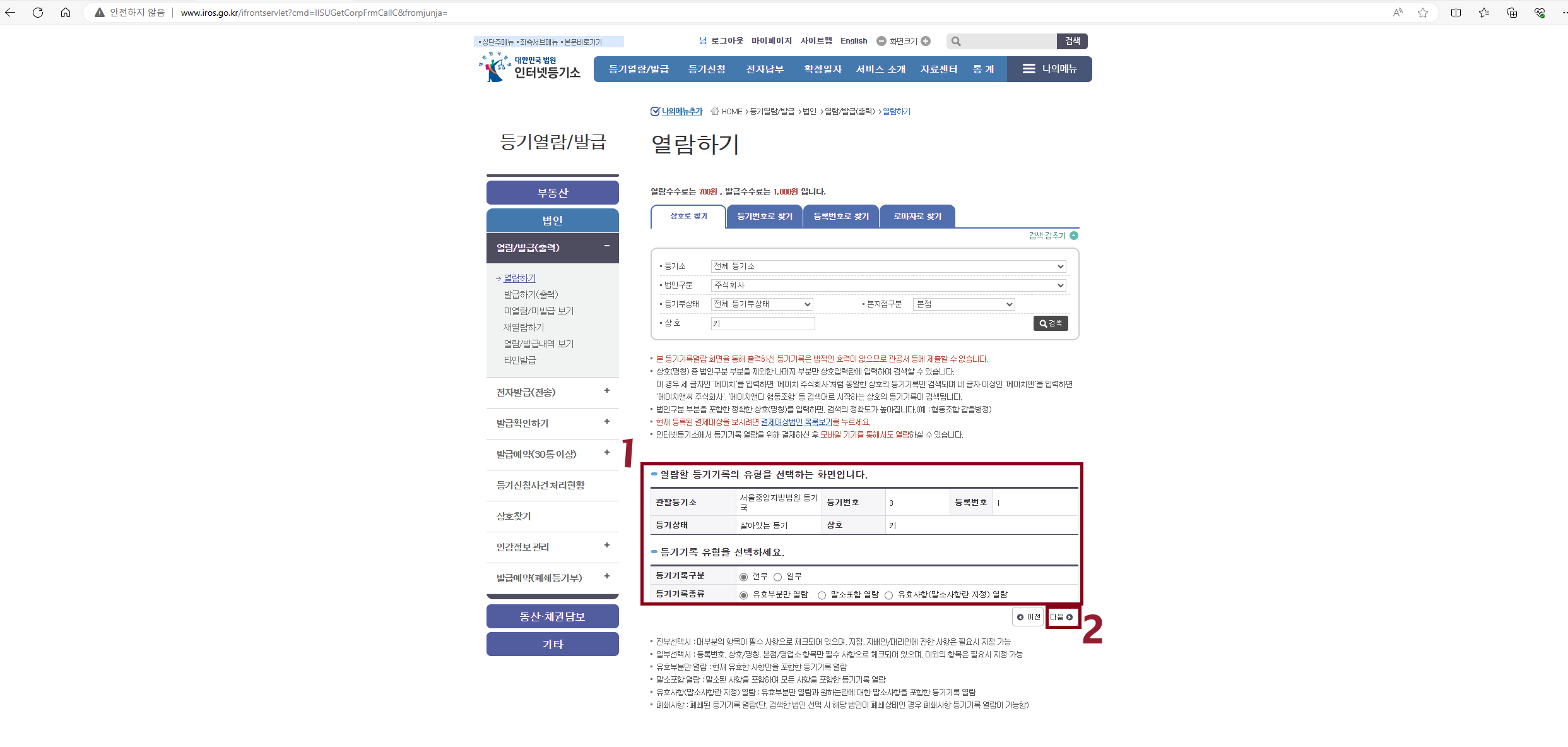 이제 결제만 하면 등기 등본 법인 등기부 열람 가능하답니다!