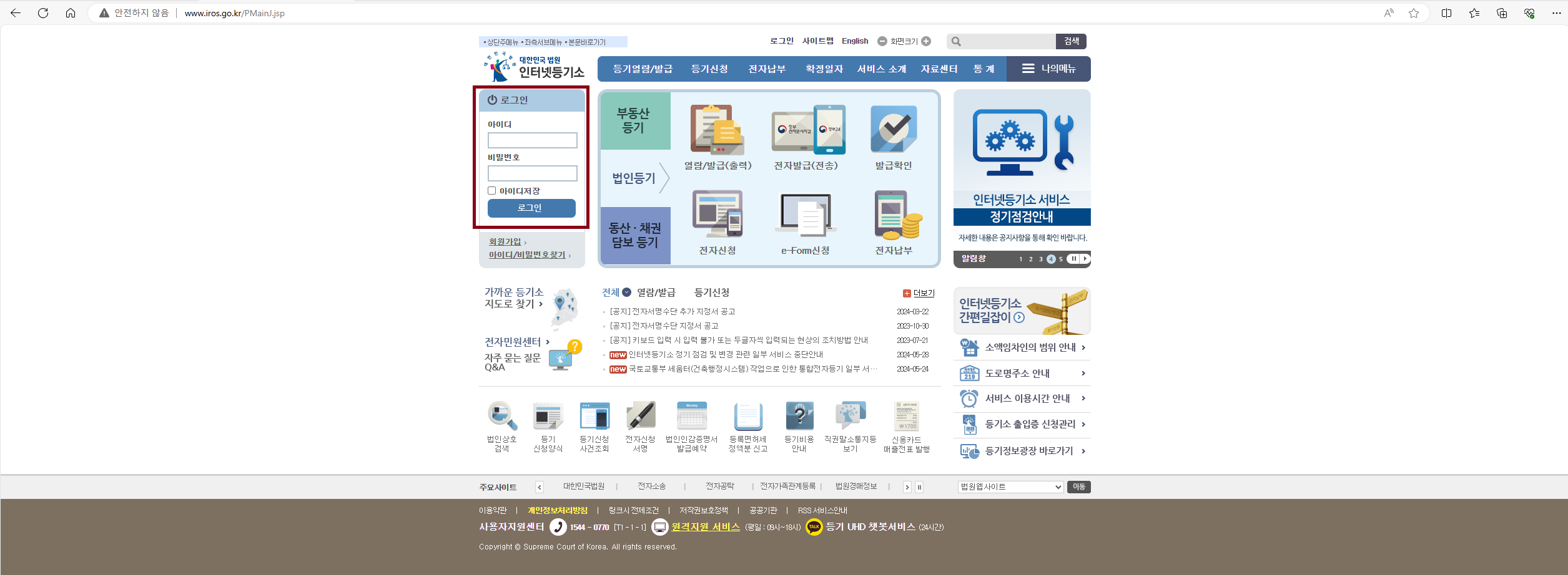 1. 대법원 인터넷등기소 홈페이지에 접속