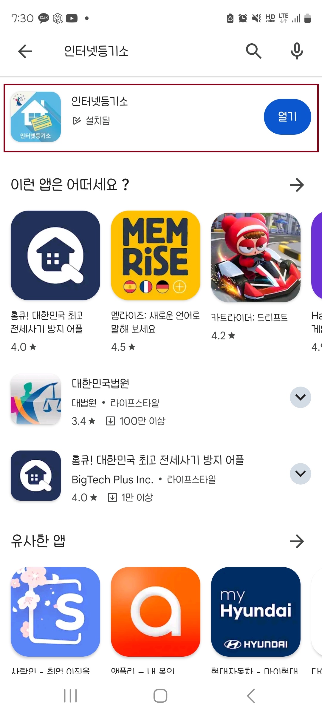 1. 플레이스토어에서 '인터넷등기소' 검색 후 설치하기