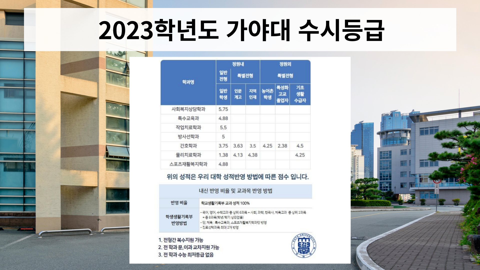 여러분이 기다리고 기다렸던 20232학년도 가야대 수시등급에 대해 말씀드리겠습니다!
