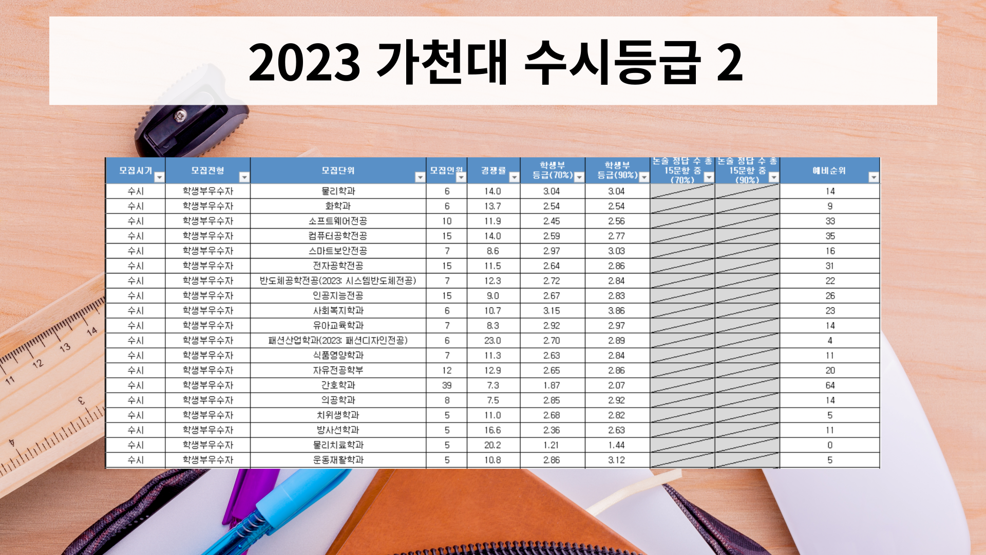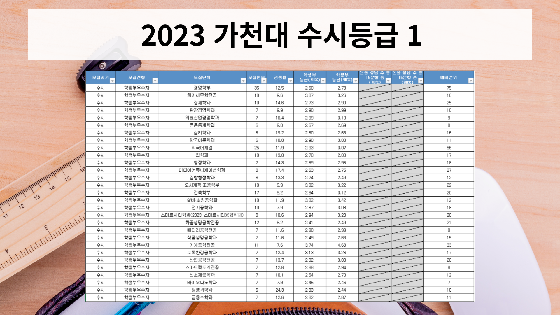 2023학년도 가천대학교 수시등급 안내해드리겠습니다.
